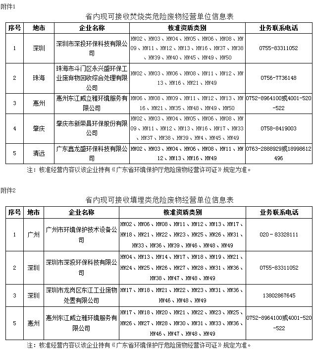 附件:1.省内现可接收焚烧类危险废物经营单位信息表
